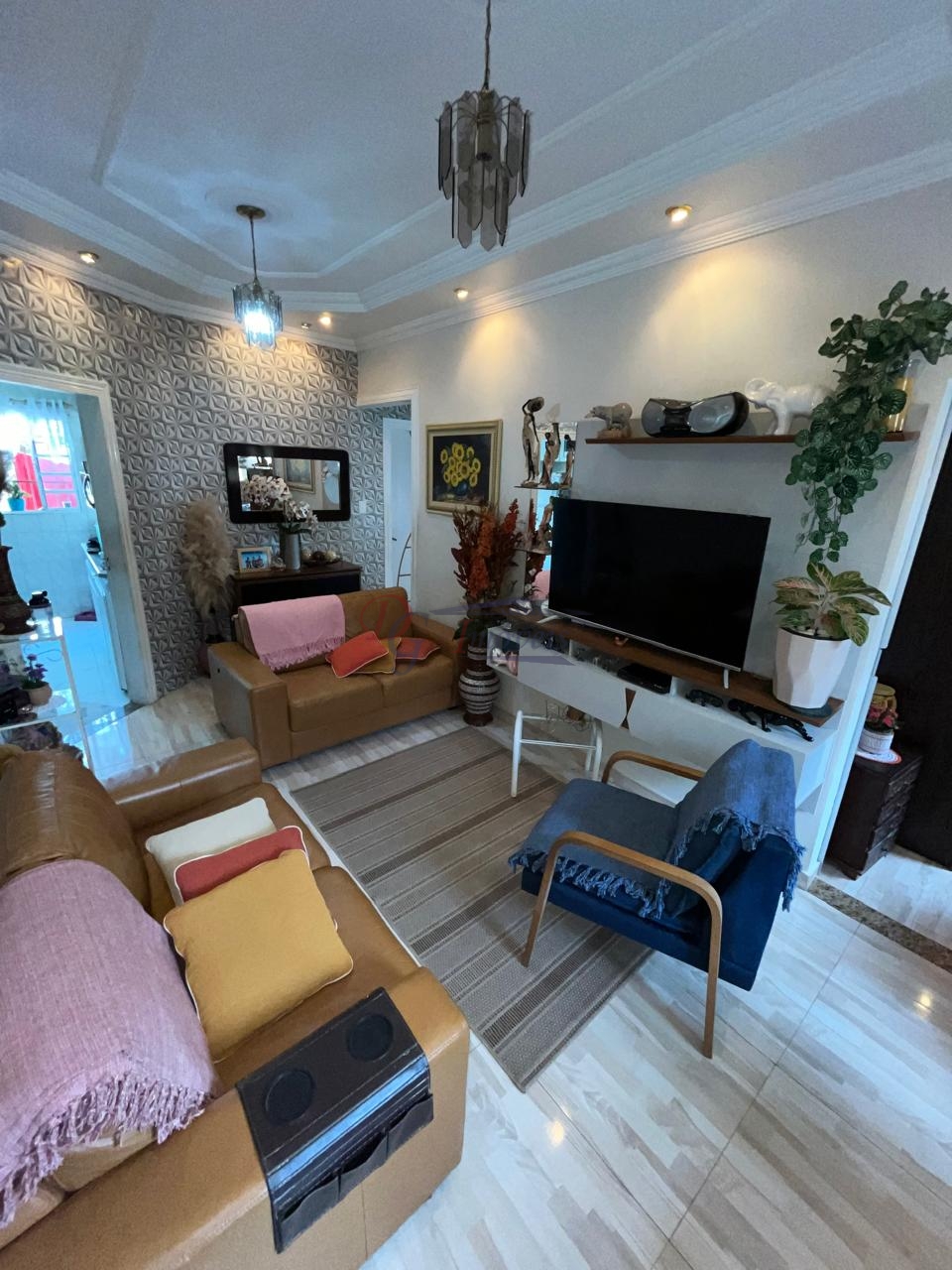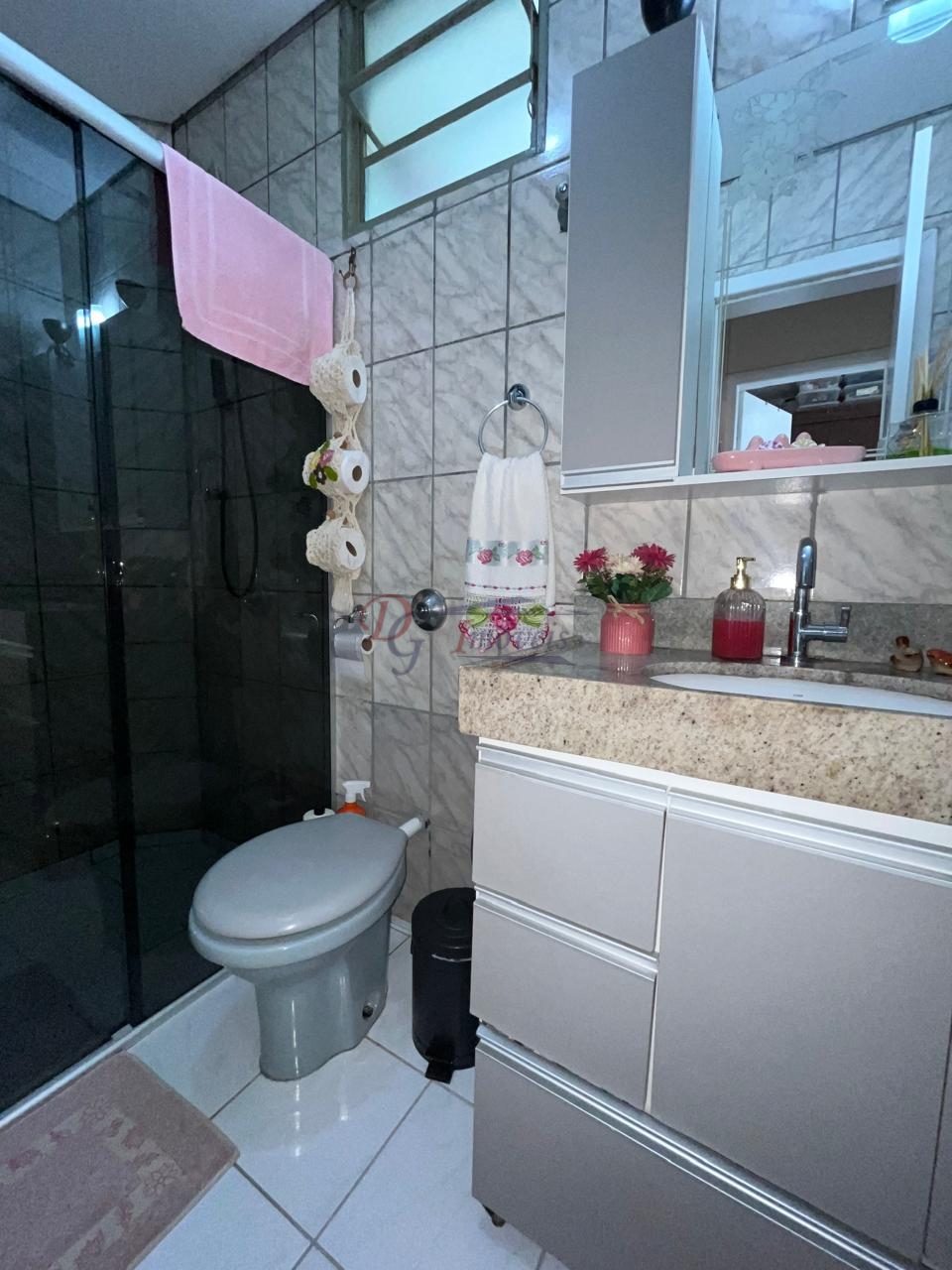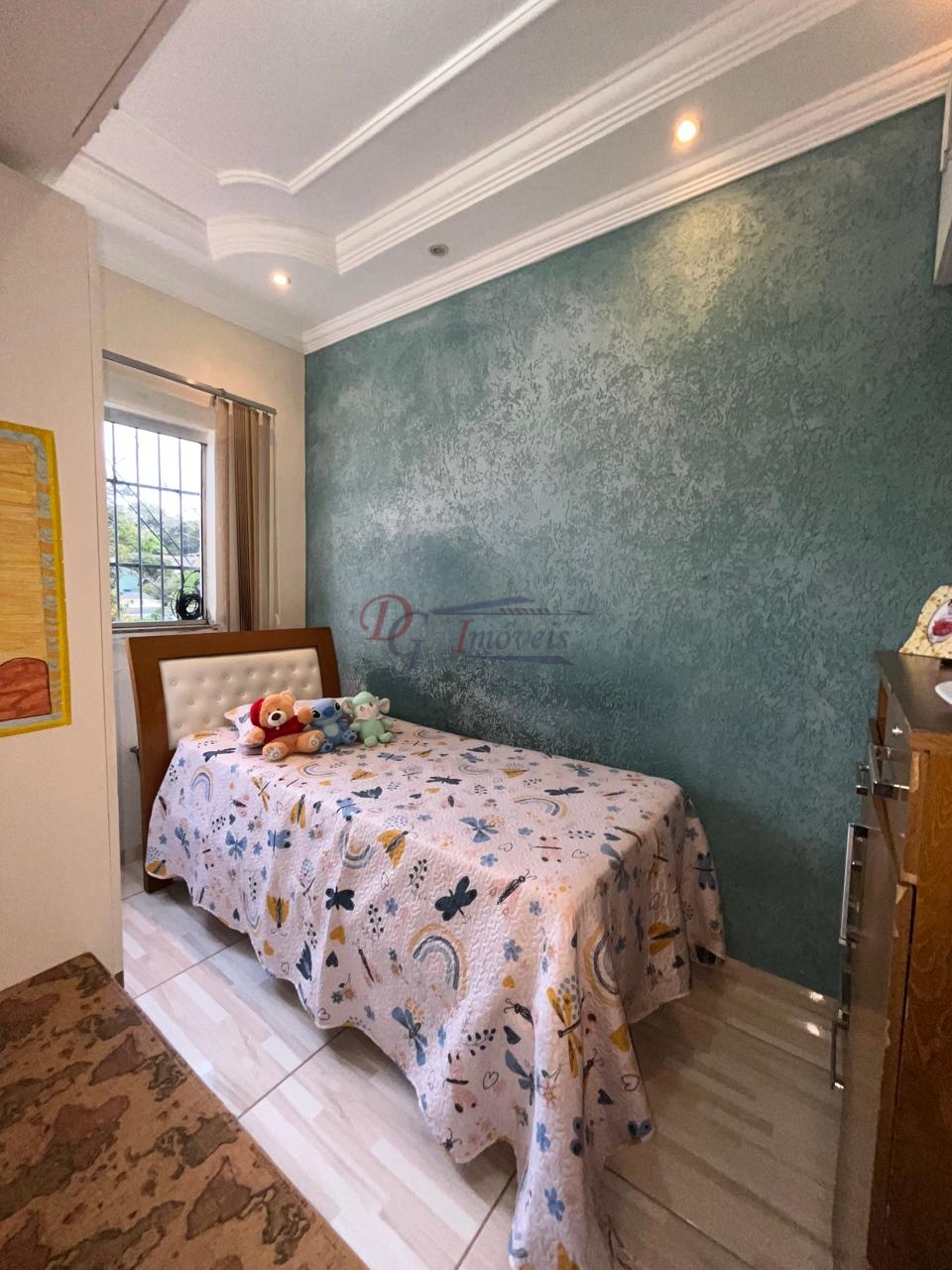 Constituído de 3 quartos sendo 1 com armários planejados, sala ampla para 2 ambientes, varanda, cozinha com bancada de granito e armário planejado, banheiro social com armário, box, espelho, todo revestido, área de serviço ampla separada da cozinha e grande área externa aos fundos com uma parte cimentada e grande uma grande mata.