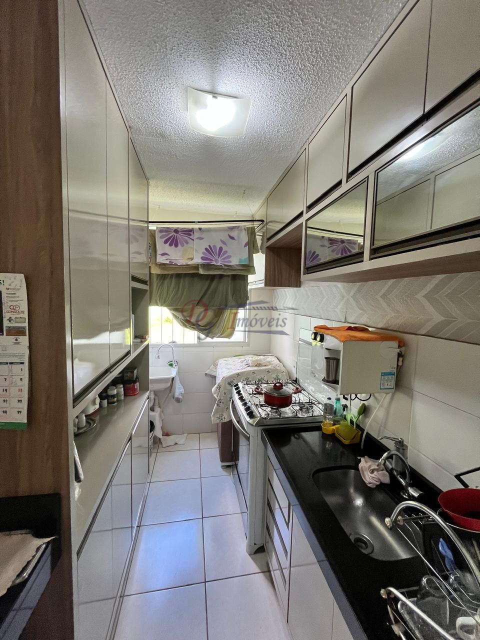 Constituído de 2 quartos, sala ampla para 2 ambientes com painel de TV, cozinha com bancada de granito, armários planejados, banheiro social com box e armário, área de serviço com tanque o e garagem com 1 vaga demarcada.