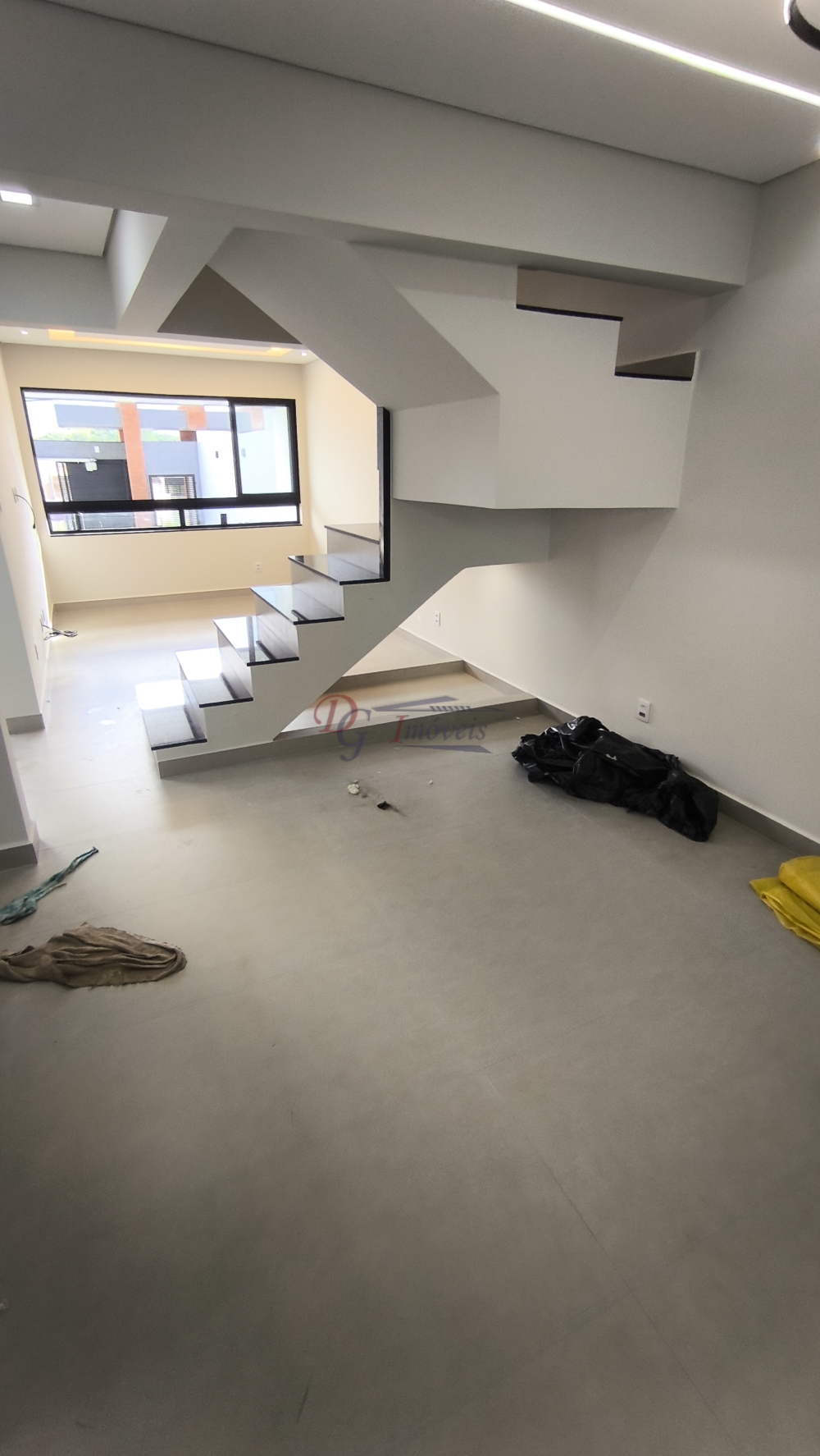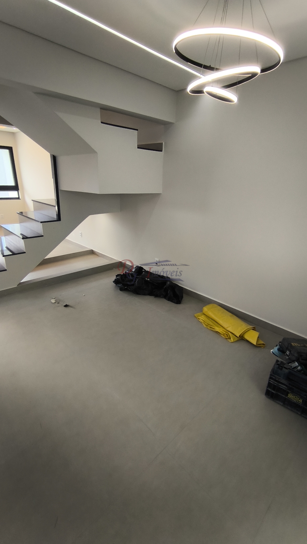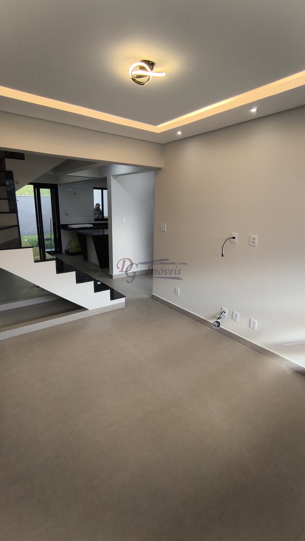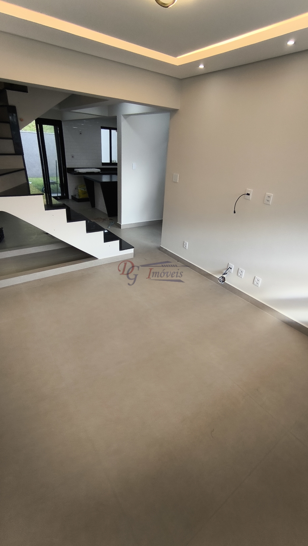 Sala ampla para 02 ambientes, cozinha estilo ambiente aberto com ilha central, lavabo, área de serviço externa e coberta, área externa enorme aos fundos e garagem para 3 veículos.